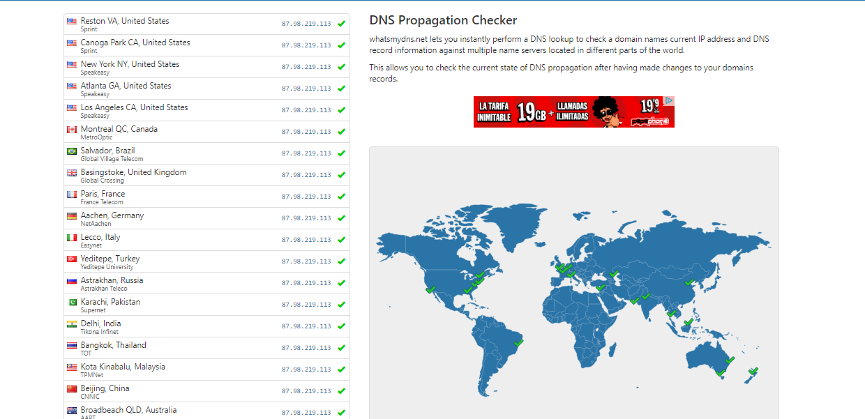 En otras ocasiones, los clientes nos piden cambios en la configuración DNS de sus dominios, y tardan en verlas. Porque la propagación de los DNS puede tardar. Esta herramienta permite verlo.