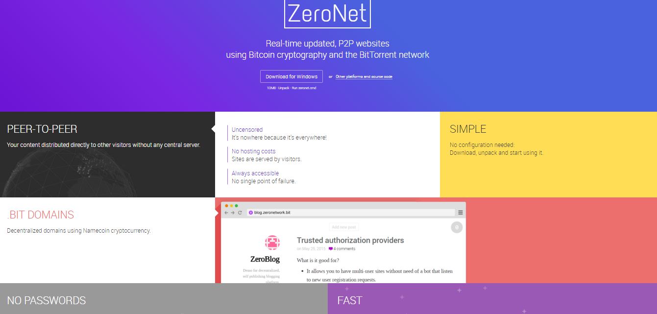 Otra de las reacciones es la ZeroNet, una Internet (es decir contiene páginas web, enlaces…contenido con hipervínculos enlazable) alternativa y descentralizada. Descentralizada porque los contenidos no se encuentran en servidores, sino que usa la red BitTorrent (P2P) para que el contenido esté en los usuarios (peers). Así, una página web no está en un servidor que se puede cerrar, sino en todos los usuarios de la red. A ver cómo cierras eso.