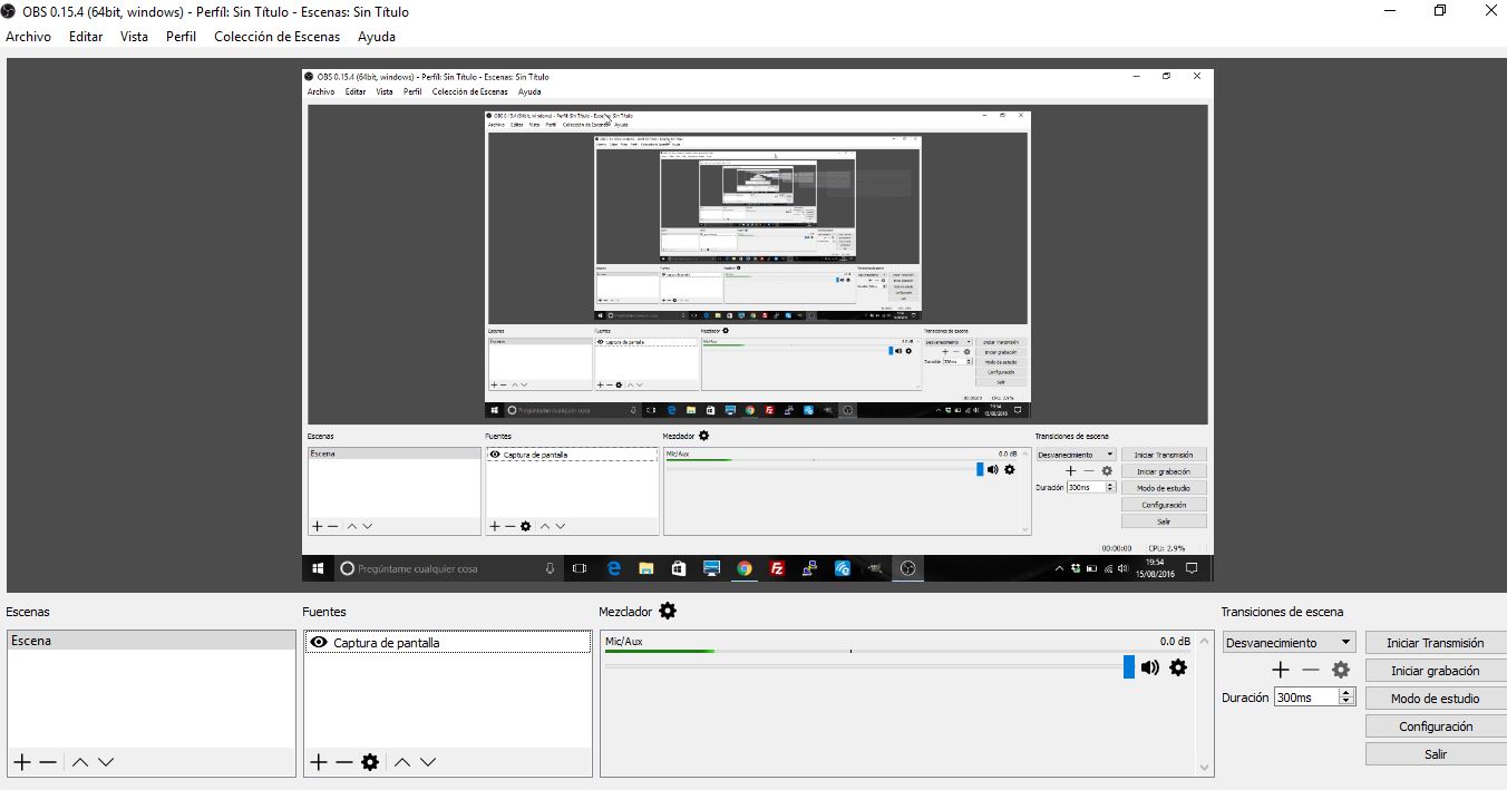 Obviamente, poco a poco había que mejorar eso, así que recurrimos a un programa, gratuito, del que ya habíamos hablado antes: OBS, Open Broadcaster Software. Disponible para Windows, Mac y Linux. Pero es que además funciona muy bien y es muy sencillo. Podéis también emitir en directo, por Internet, lo que mostréis en pantalla (otro día enseñamos eso).