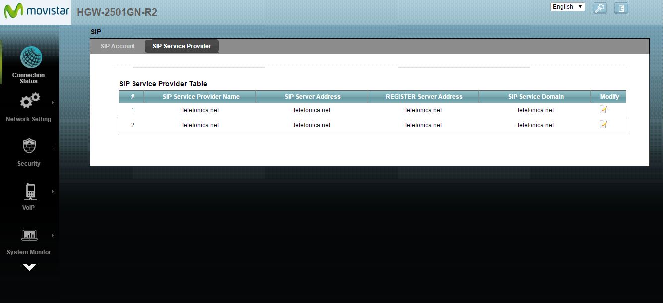 Con esto ya podréis usarlo. Para poder conectar también teléfonos al router: - Después en SIP ve a la segunda pestaña: SIP Services Provider> Modify (en el primero por ejemplo).