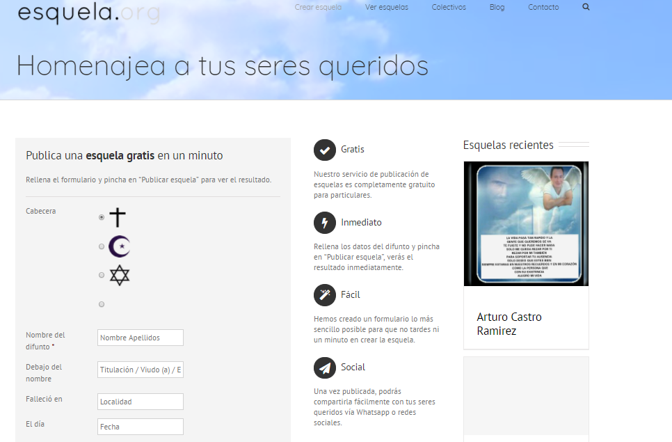 Hace unos días una amiga nos envió este página Esquela.org, y es una buena muestra de eso. Un servicio tan antiguo como el ser humano, recordar a los seres queridos que se han marchado, dar el pésame y recordarles, llevado a Internet.