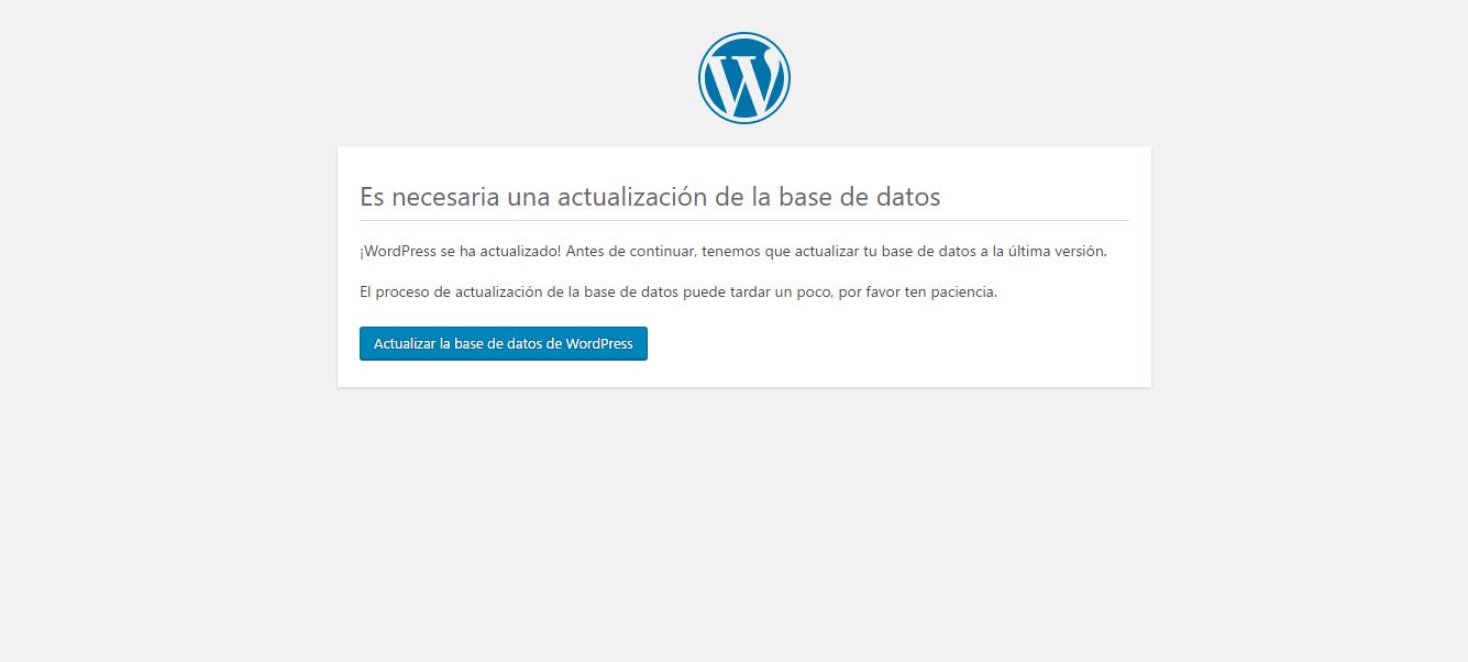 - Acceder al backend (wp-admin).Ahora debería dejar y, tras inciar sesión, debería pedir actualizar la base de datos.