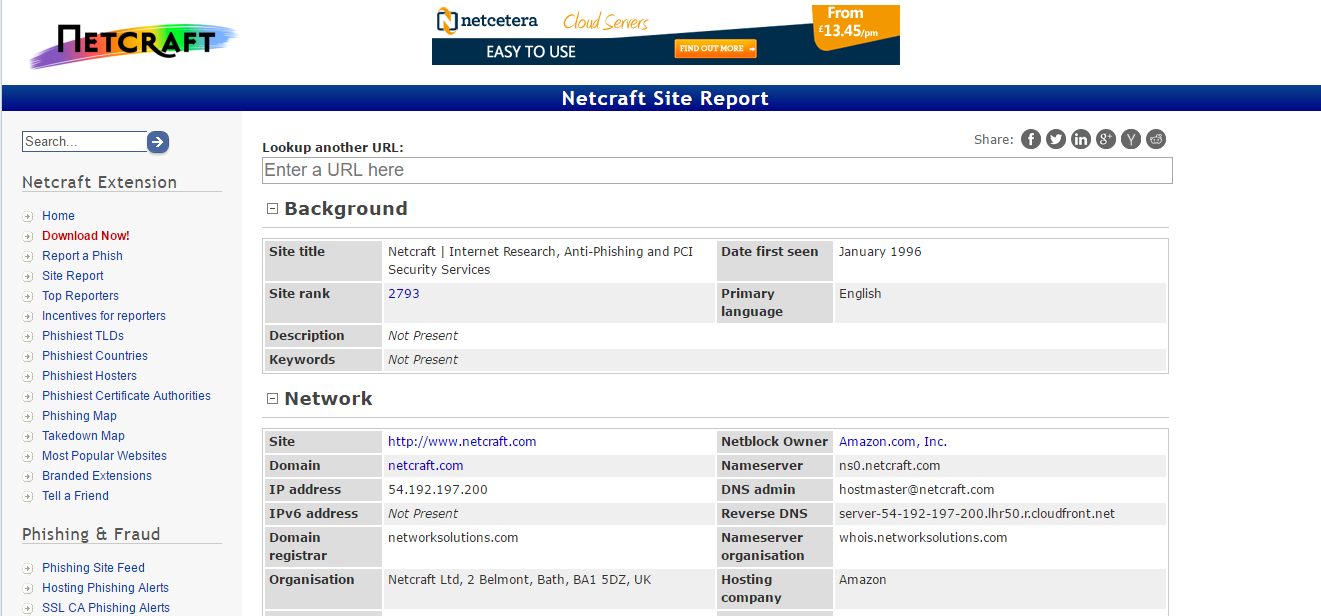 1. Netcraft: de las más veteranas y con información más clara y detallada.