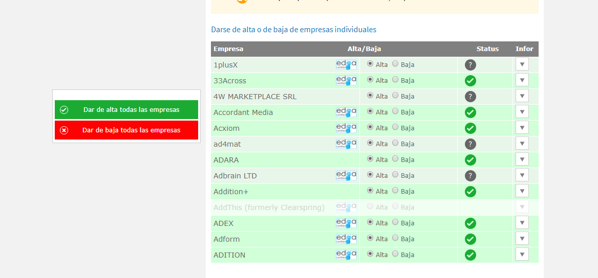 - Podrás luego, si desciendes en la página, ver los anunciantes y darte de baja en todos o sólo en algunos.